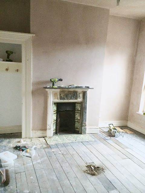 We got the wooden floor sanded and varnished, the walls painted, coving put up, shelves installed and painted and the fireplace and all the woodwork painted too. The room is now pretty much finished apart from a few last touch ups! I'm not sure if I'll do a proper transformation post on this room because it's actually our guest bedroom, but we're going to be using it as a living room while we decorate downstairs!